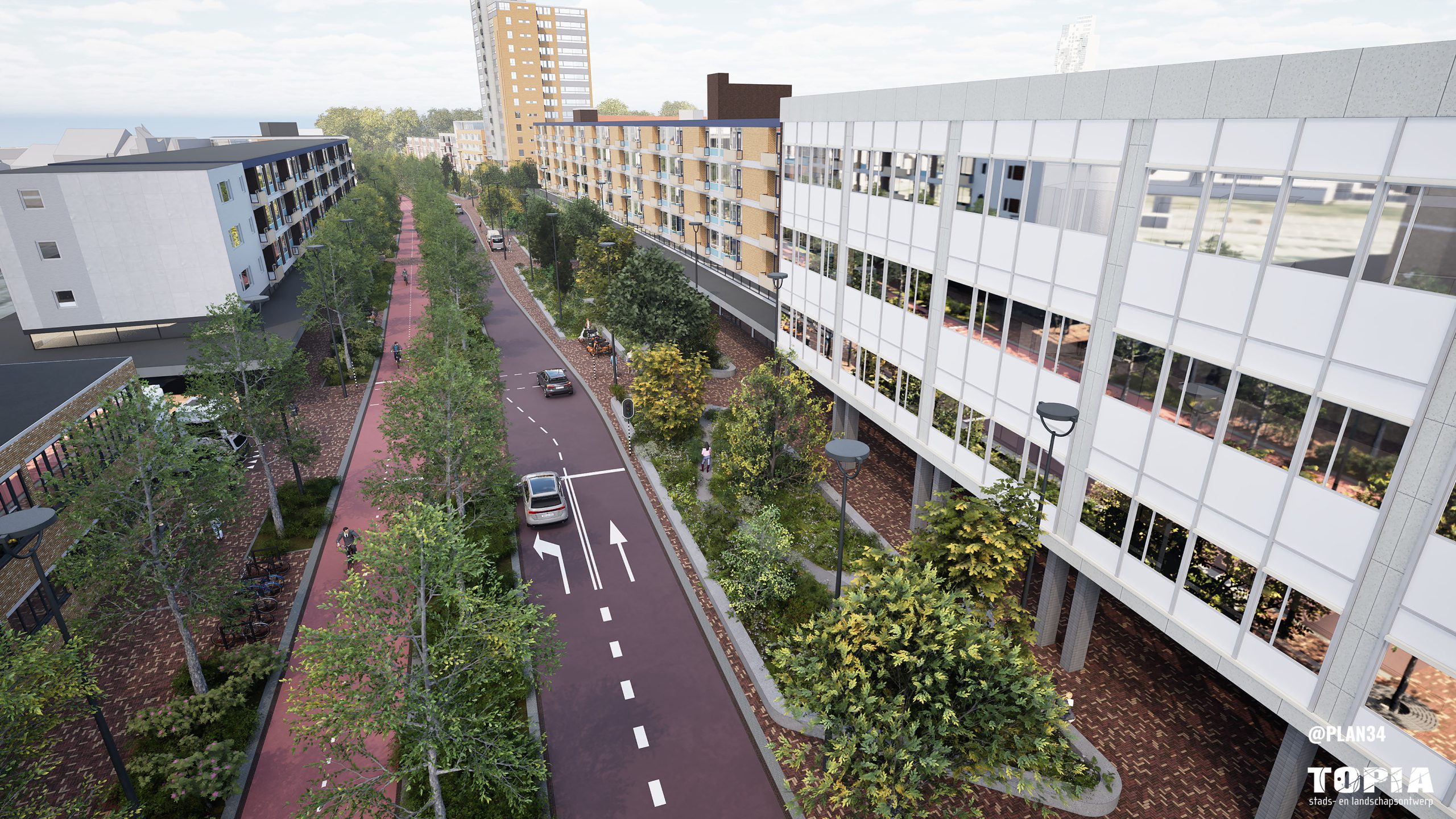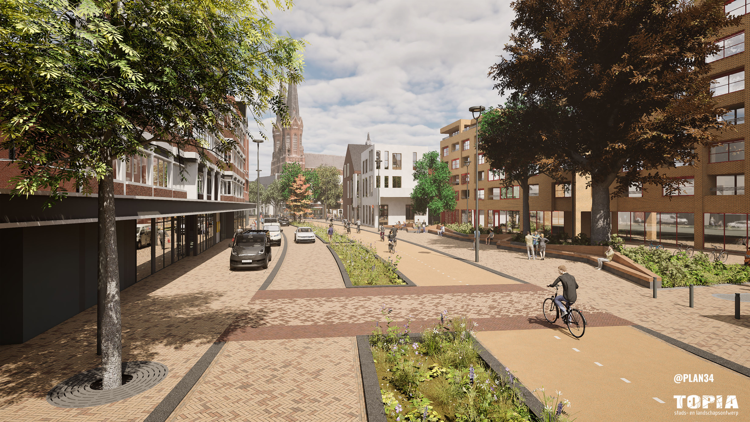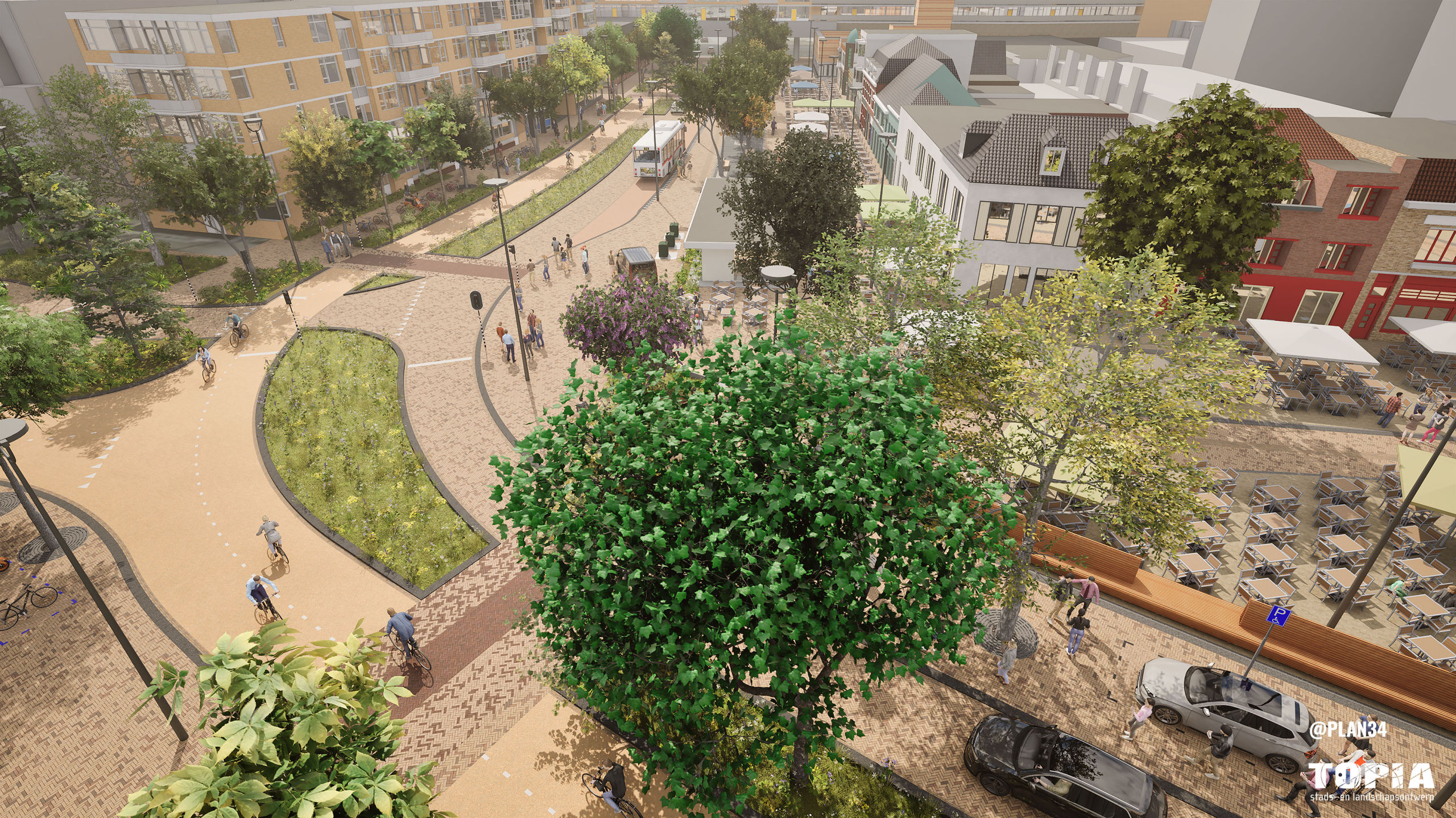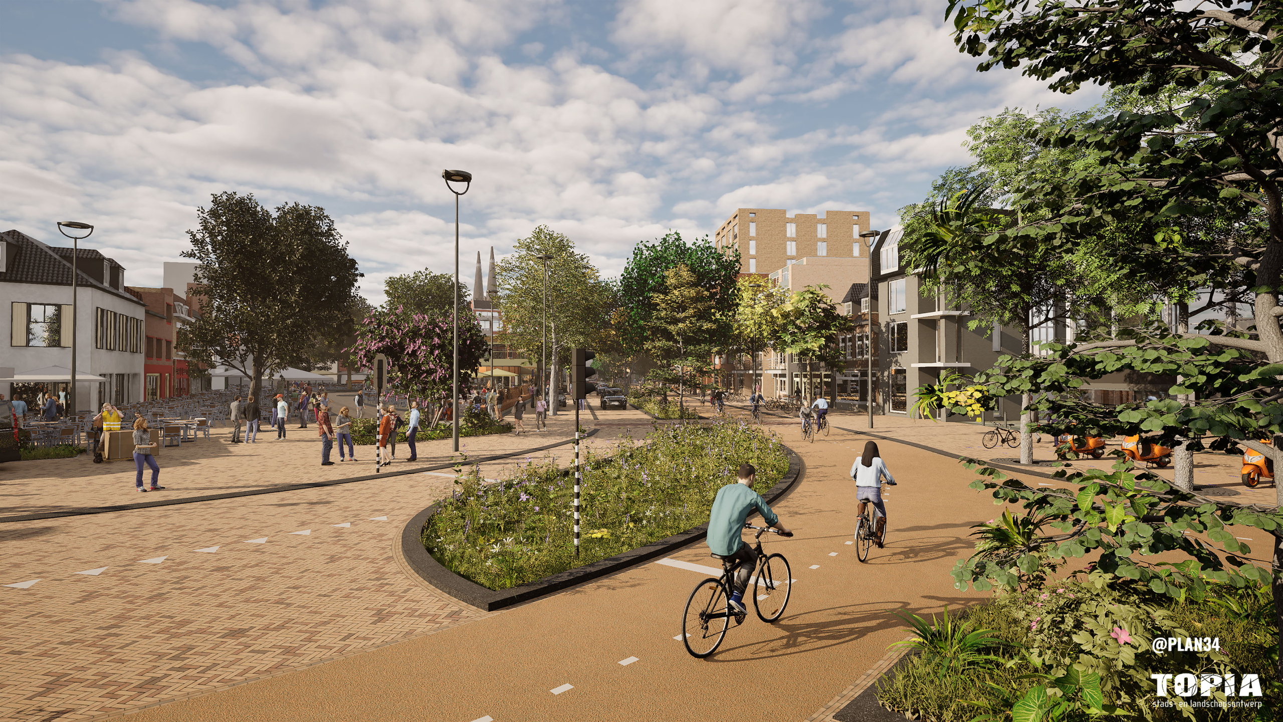 Overal geldt hetzelfde principe: een smalle rijbaan, een breed tweerichtingsfietspad en daartussen een groene middenstrook met grote bomen. Per straat verschilt de materialisering en ontstaan kleine pleintjes met subtiele verspringingen. Zo worden oversteekroutes veiliger en bewegen fietsers en auto’s rustiger door de straat.