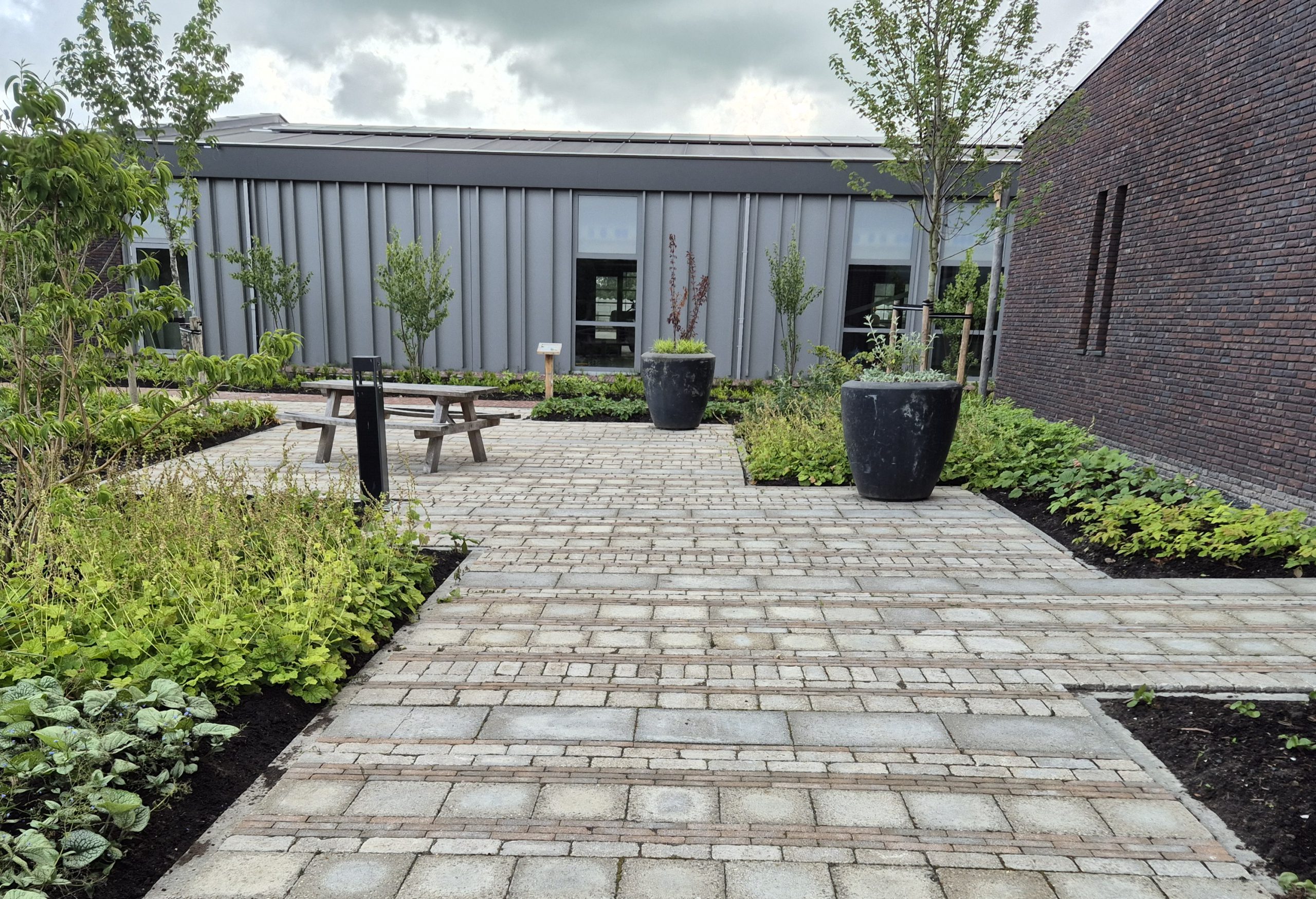 De nieuwe tuin heeft veel functies, zoals een warm welkom voor bezoekers en een pauzeplek voor ambtenaren. Maar het is vooral een voorbeeld voor bewoners, om biodivers, waterproof en circulair te werken. Want iets nieuws maken hoeft niet per se met nieuwe materialen.