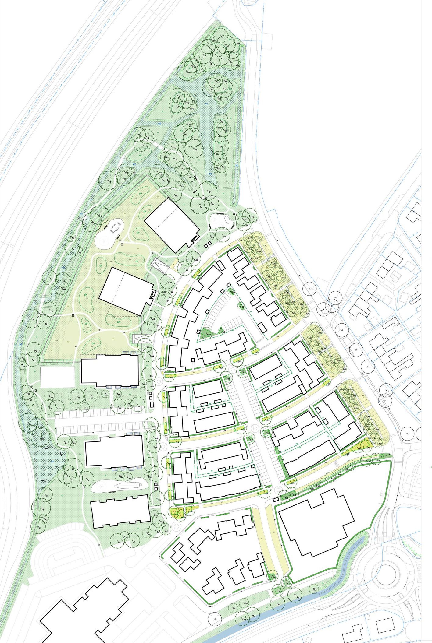 Aan de rand van Kesteren verrijzen zo’n honderd grondgebonden woningen en 261 appartementen. Topia maakte het ontwerp voor de openbare ruimte én het beplantingsplan.